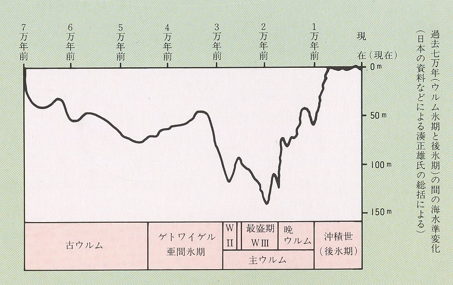 反対に、温暖期の海水面上昇、これを海進という。2万年前の最寒冷期以後、