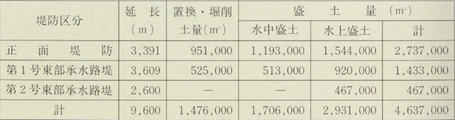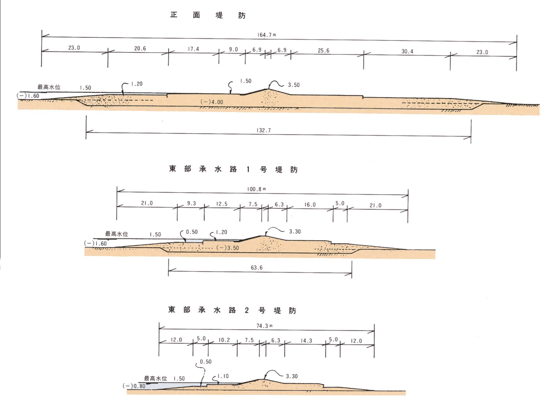 正面堤防、東部承水路1号堤防は、潟底の土 |