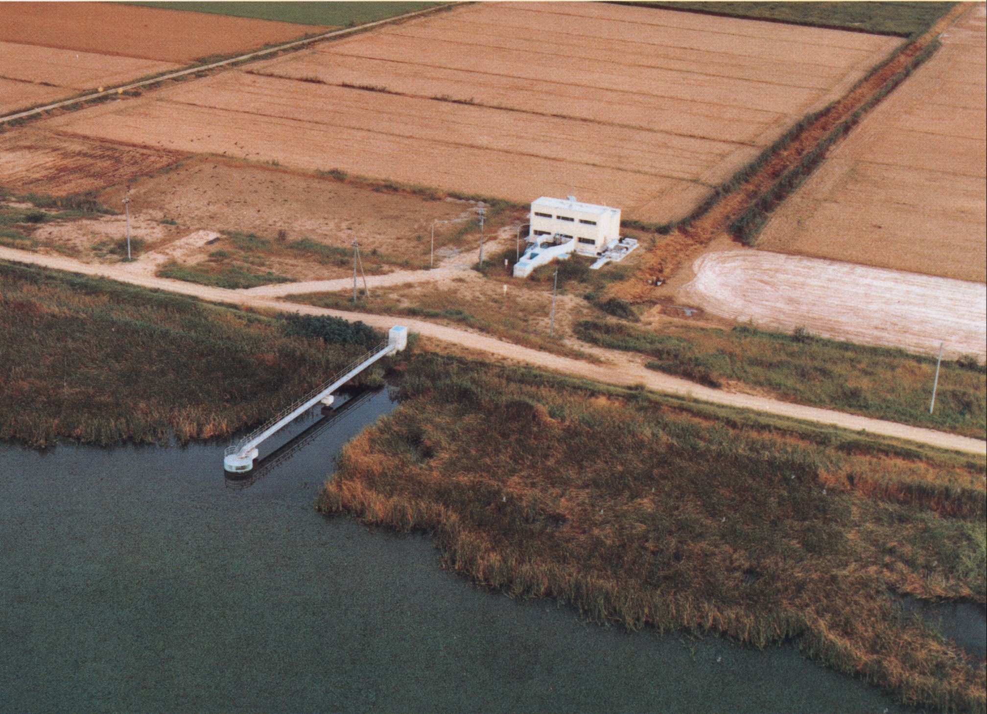 | 干拓地の用水 植物の生長に水は欠かせないが、根から吸収する水量はごくわずかであり、水田の水などは、その大部分が稲の栽培をやりやすくするためのものである。